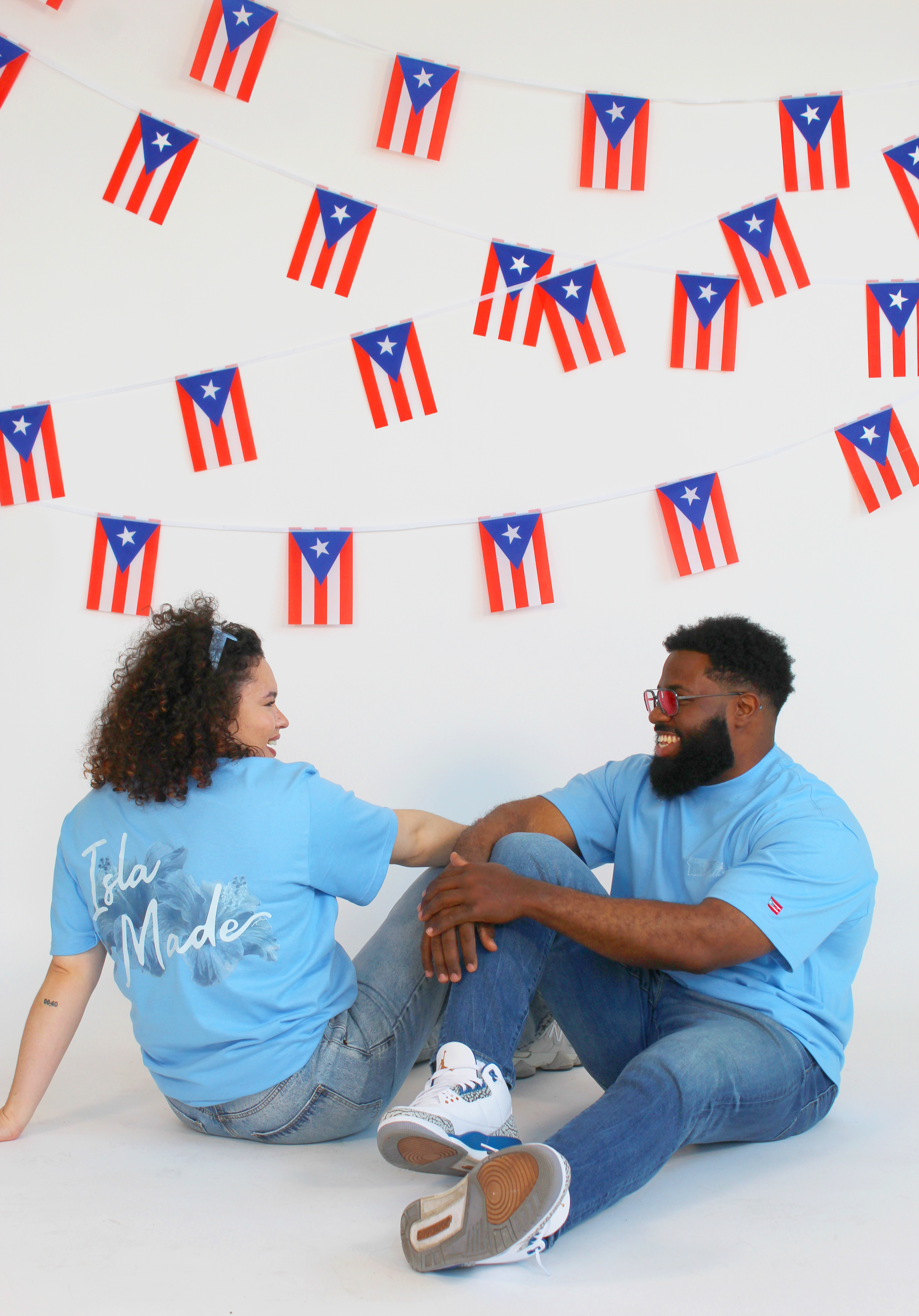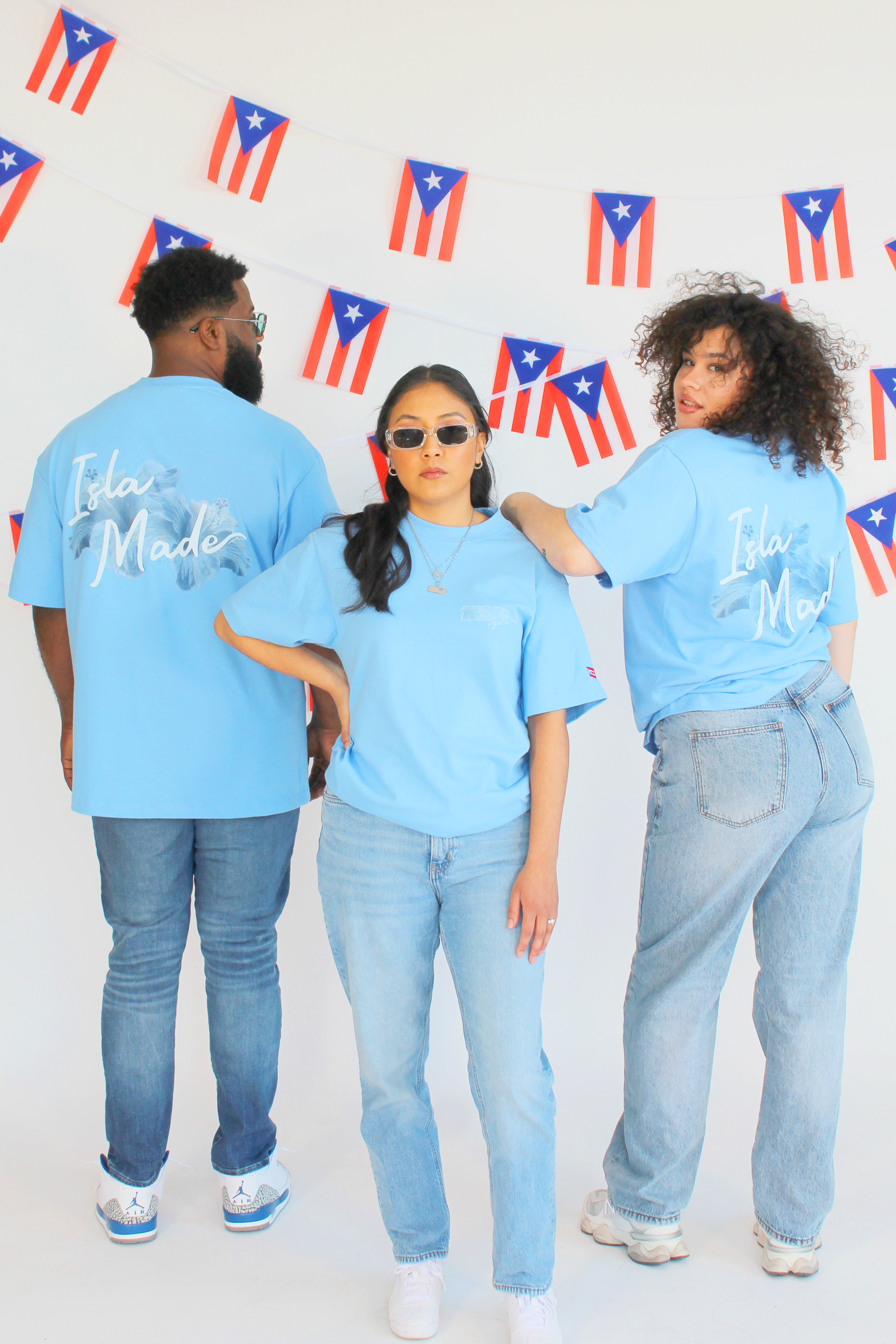 Meet your new go-to, un pedacito de cielo. The Isla Made Top is effortlessly cool, endlessly soft, and thoughtfully designed for Puerto Ricans to wear their pride with style. Wear it to feel connected to your roots, to show your love for Puerto Rico, and to carry a piece of the island with you—no matter where you are. Boricua hasta en la luna.